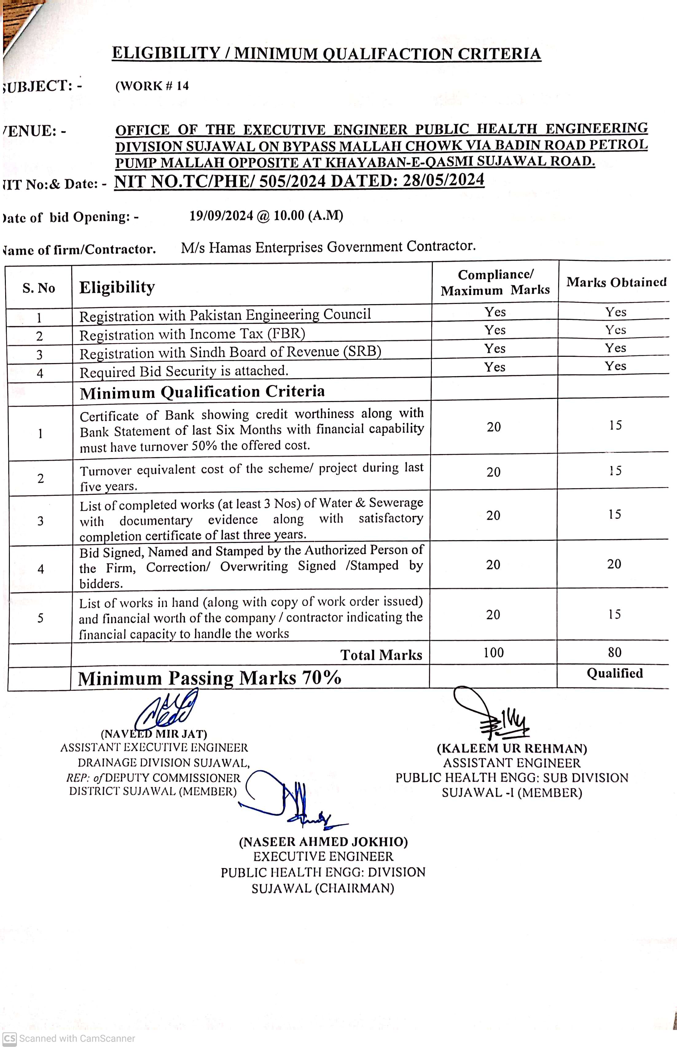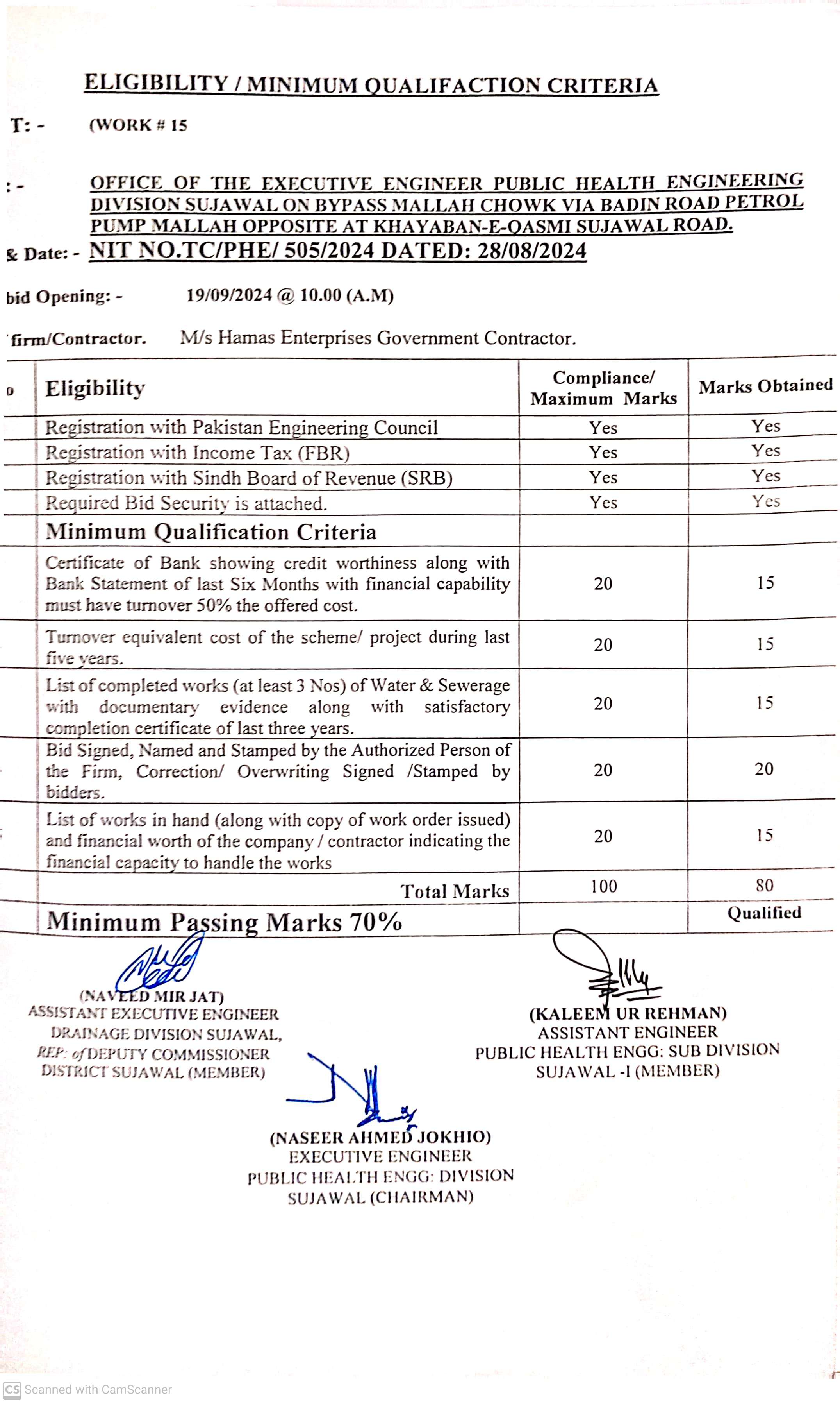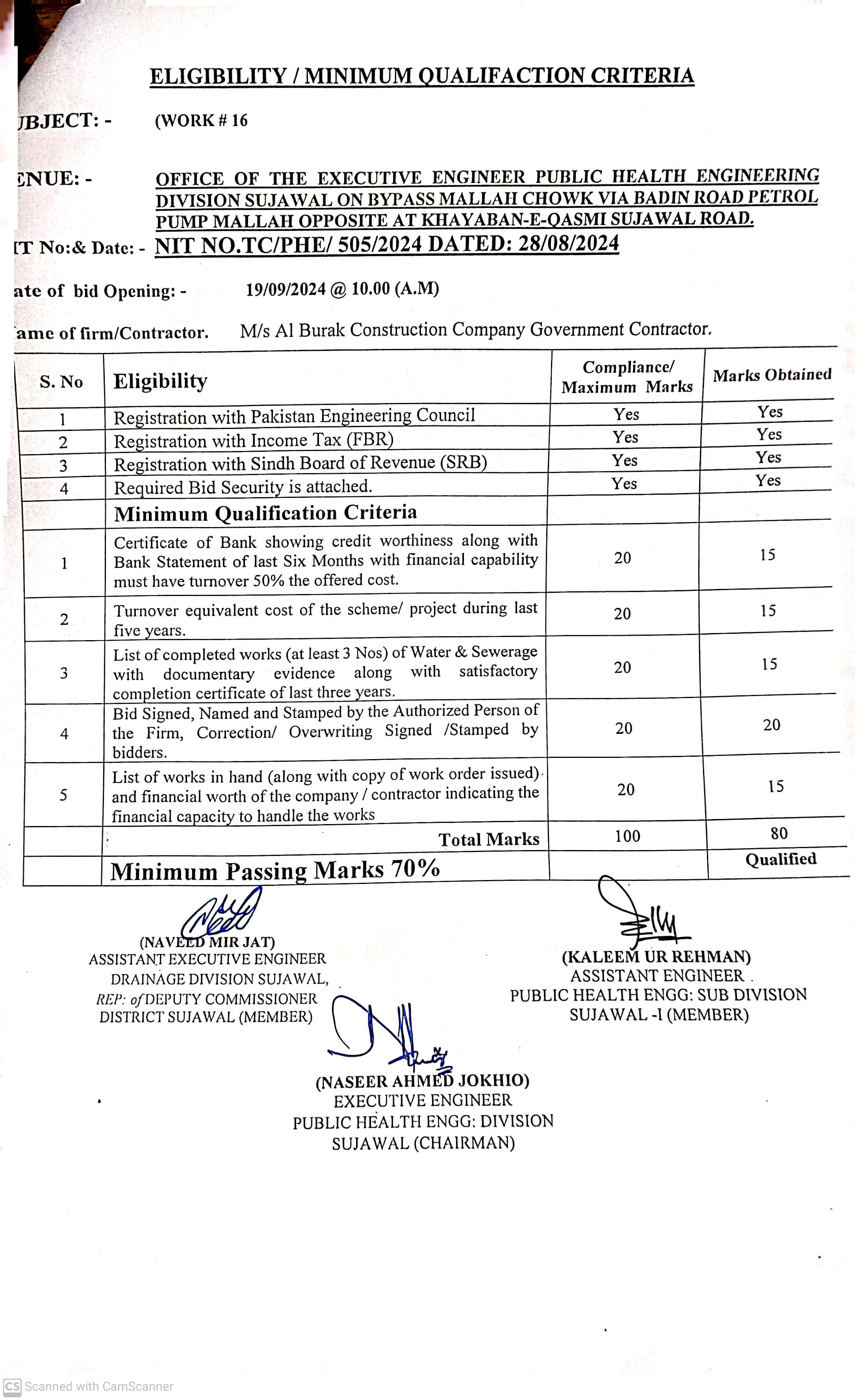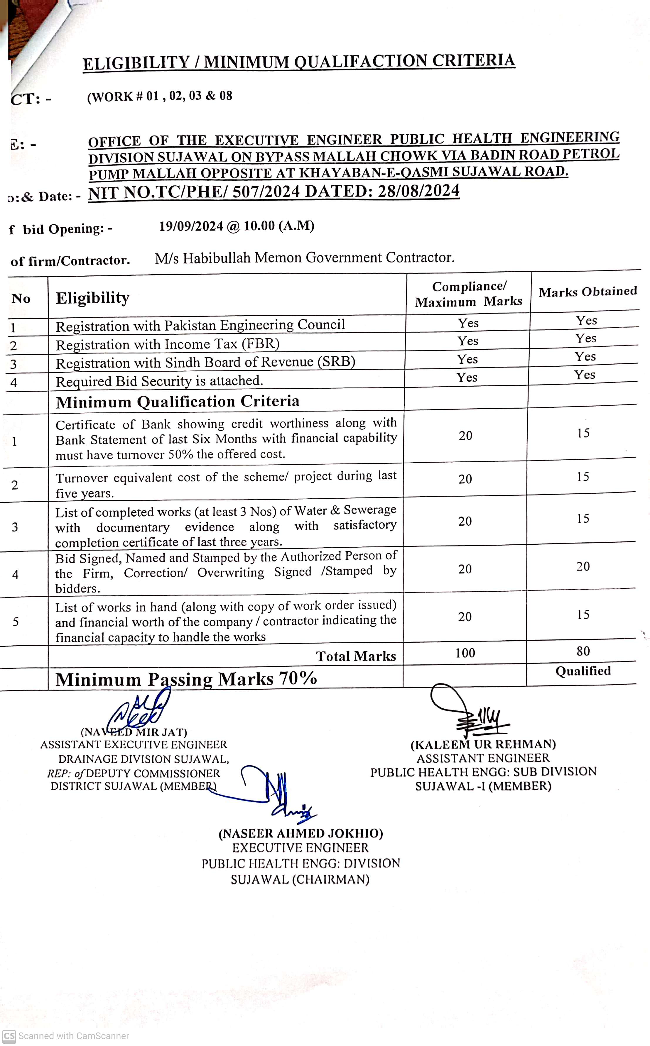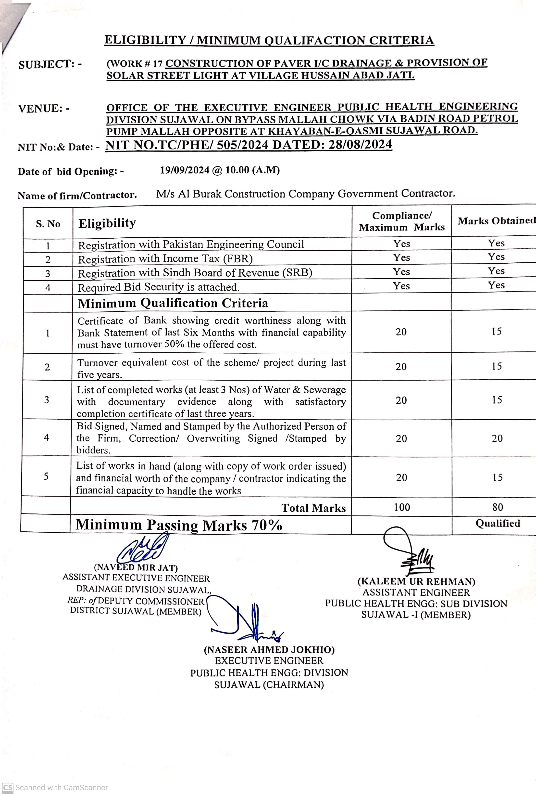 | T00889-23-0002 | BE00889-23-0002-14 | 14. CONSTRUCTION OF PAVING BLOCK & PROVISION OF SOLAR LIGHTS AT VILLAGE JARR TALUKA SUJAWAL | Executive Engineer Public Health Engineering Division Sujawal (34-Public health Engineering Department) | 20-09-2024 | Sujawal | Active |