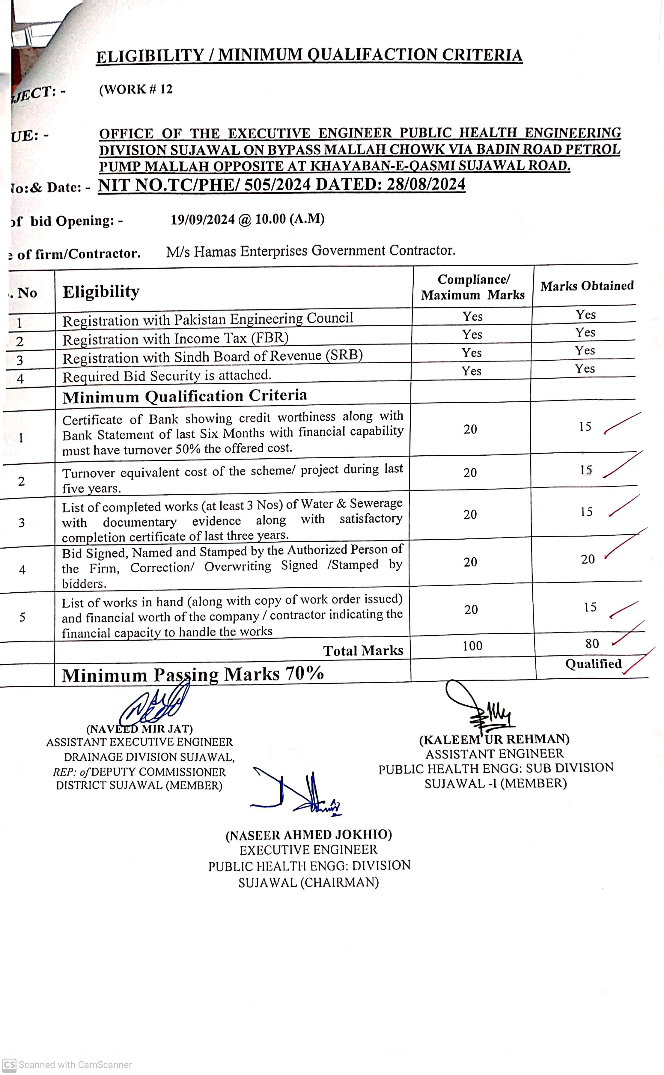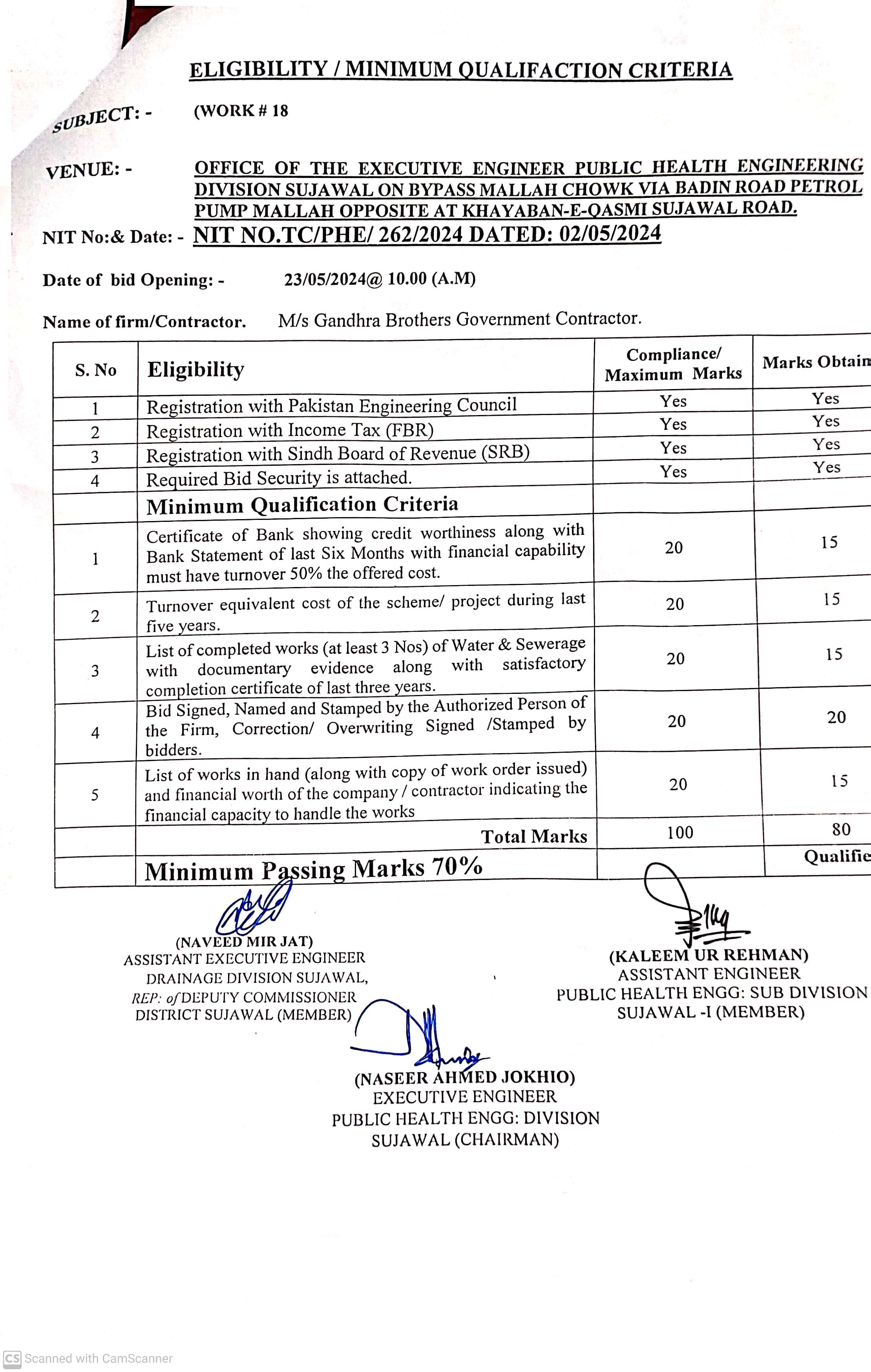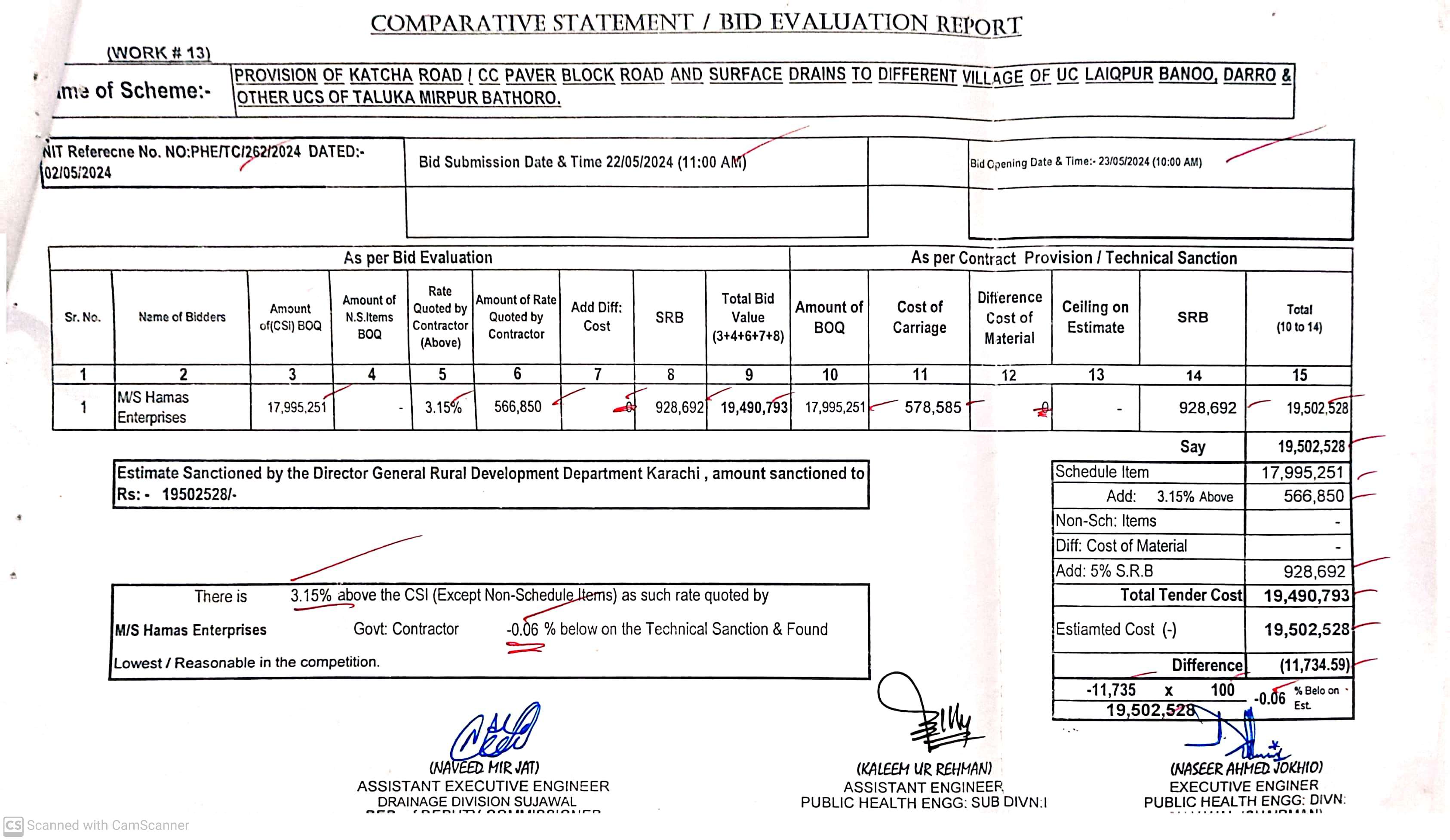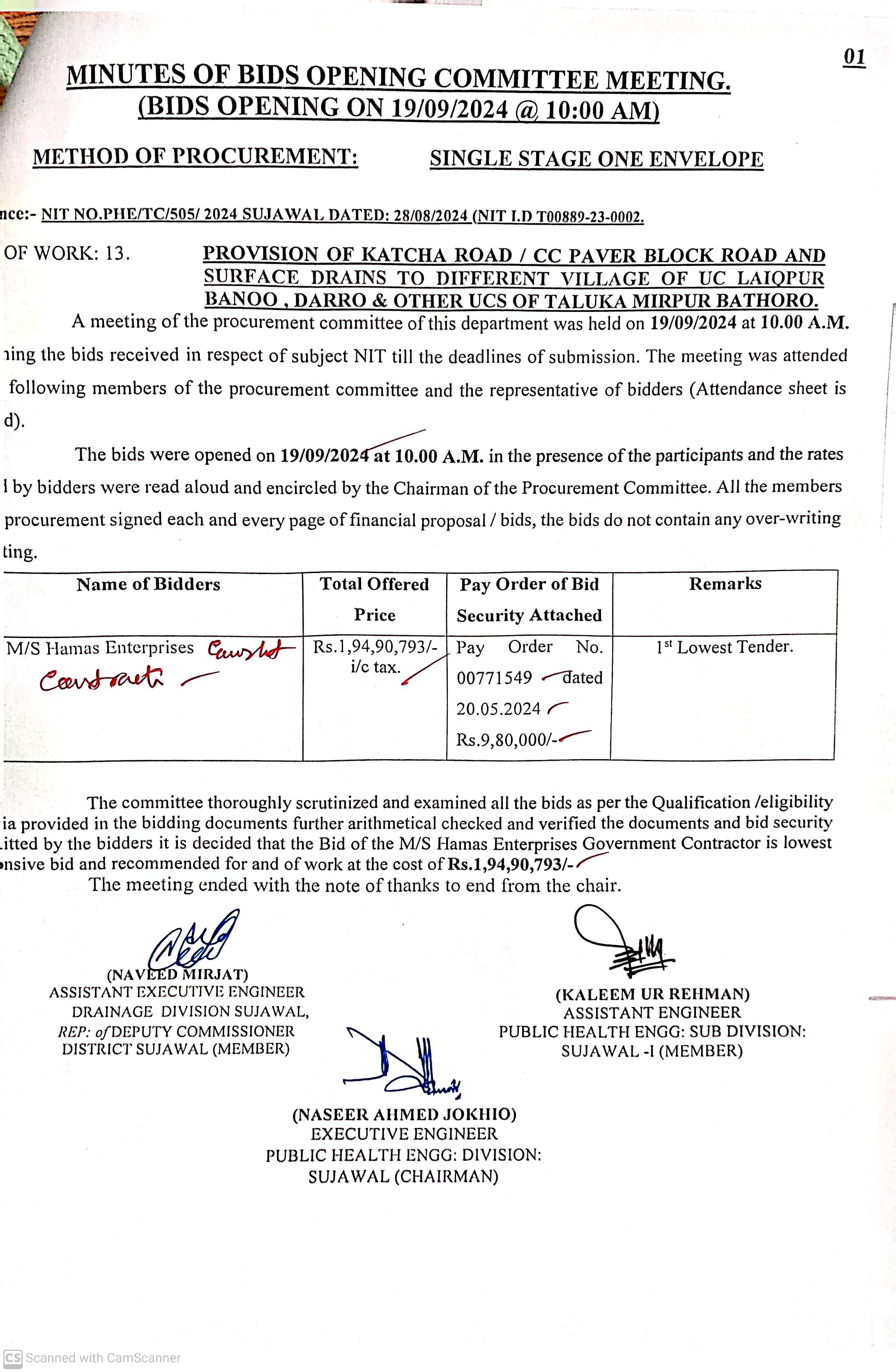 | T00889-23-0002 | BE00889-23-0002-12 | 12. PROVISION OF CULVERTS AND BRIDGES TO DIFFERENT VILLAGES OF UC KAMARO , UC DK SOHO & OTHER UCS OF TALUKA BATHORO/ SUJAWAL DISTRICT SUJAWAL | Executive Engineer Public Health Engineering Division Sujawal (34-Public health Engineering Department) | 20-09-2024 | Sujawal | Active |