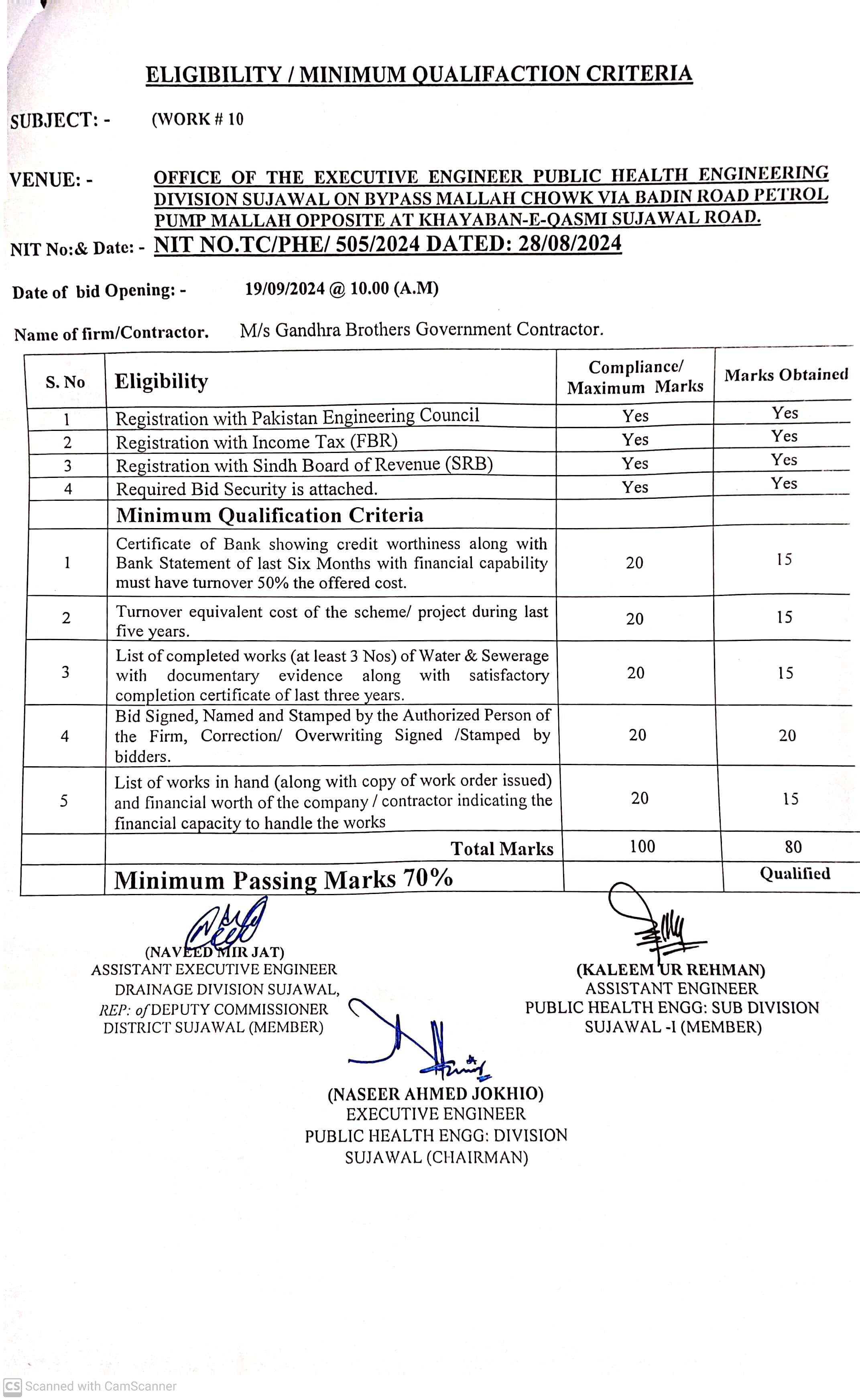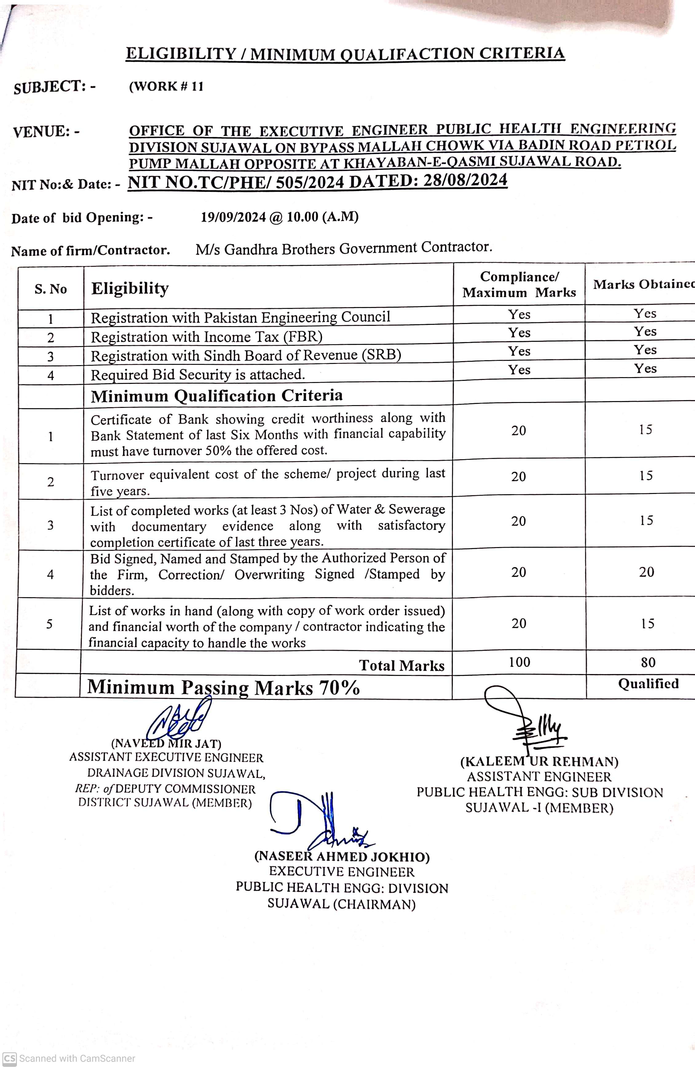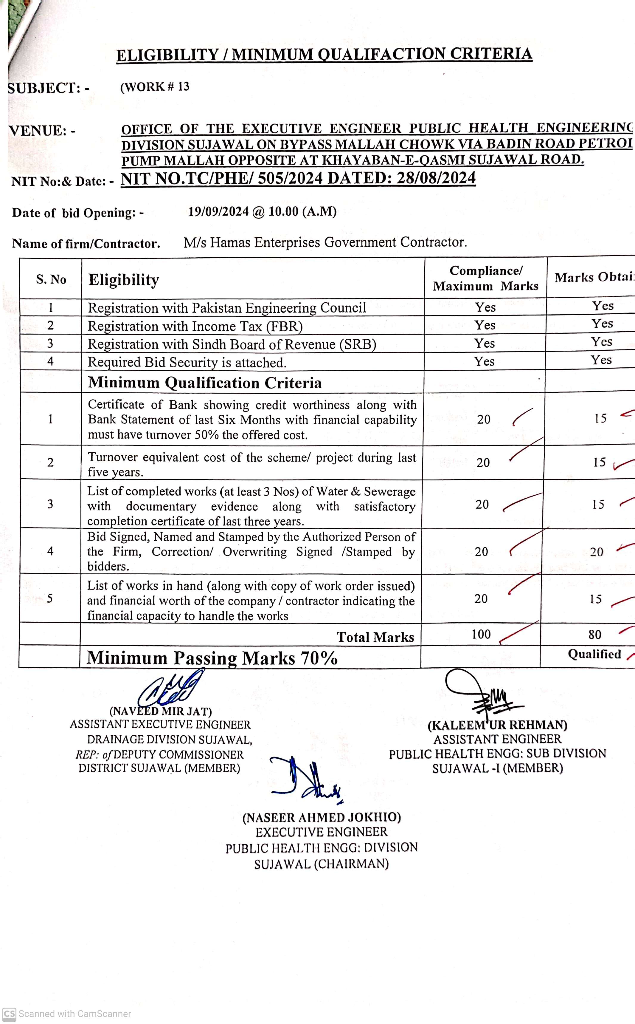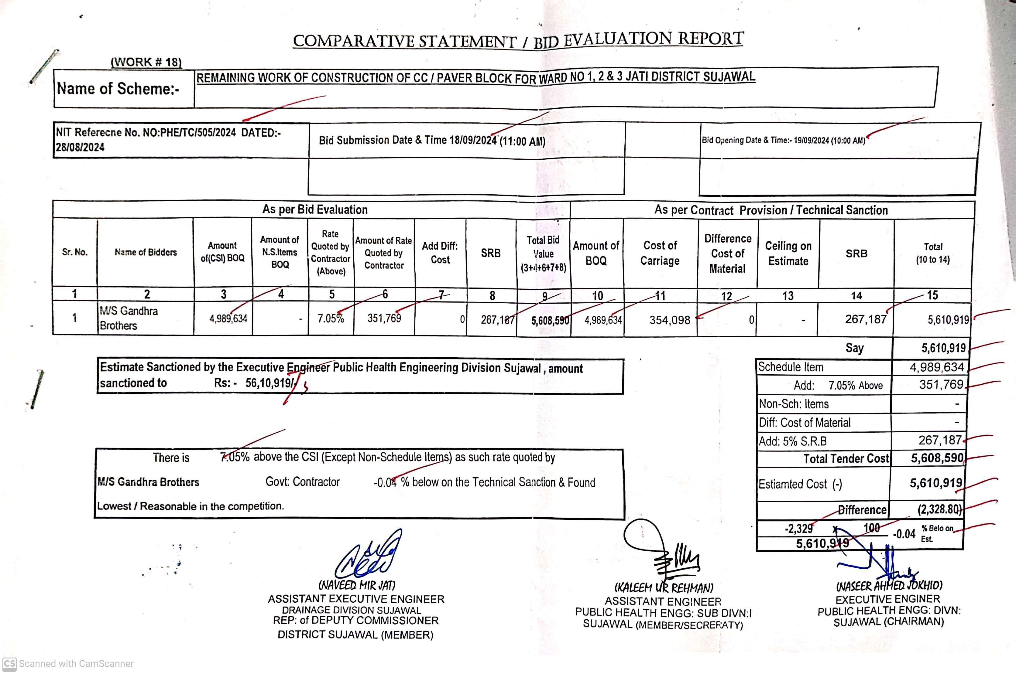 | T00889-23-0002 | BE00889-23-0002-12 | 12. PROVISION OF CULVERTS AND BRIDGES TO DIFFERENT VILLAGES OF UC KAMARO , UC DK SOHO & OTHER UCS OF TALUKA BATHORO/ SUJAWAL DISTRICT SUJAWAL | Executive Engineer Public Health Engineering Division Sujawal (34-Public health Engineering Department) | 20-09-2024 | Sujawal | Active |