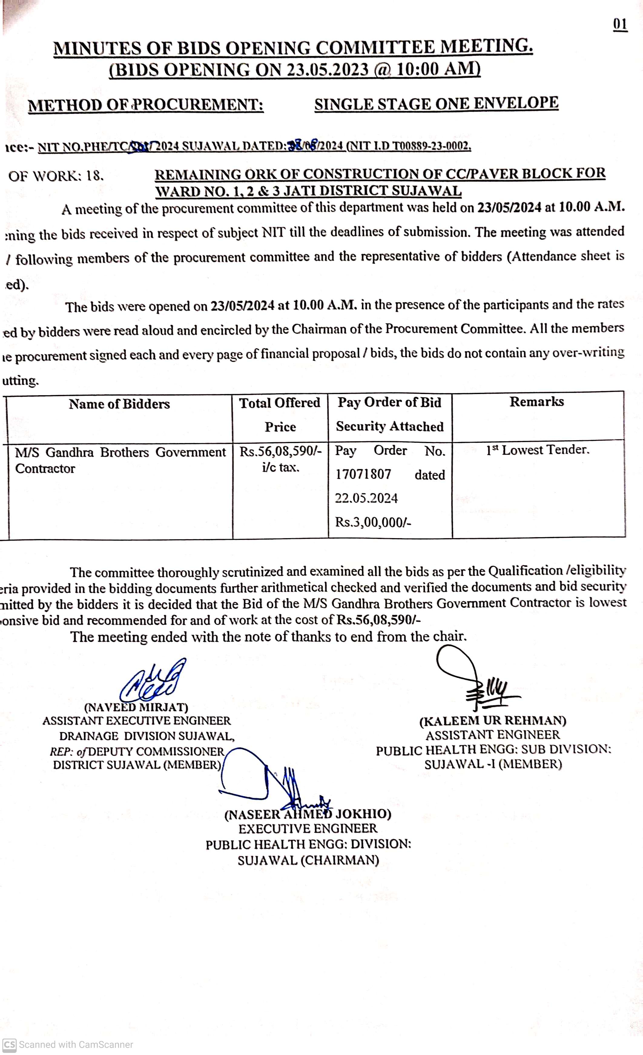 | T00889-23-0002 | BE00889-23-0002-18 | 18. Remaining Work of Construction of C.C. /Paver Block of Ward No. 1, 2 & Taluka Jati | Executive Engineer Public Health Engineering Division Sujawal (34-Public health Engineering Department) | 20-09-2024 | Sujawal | Active |