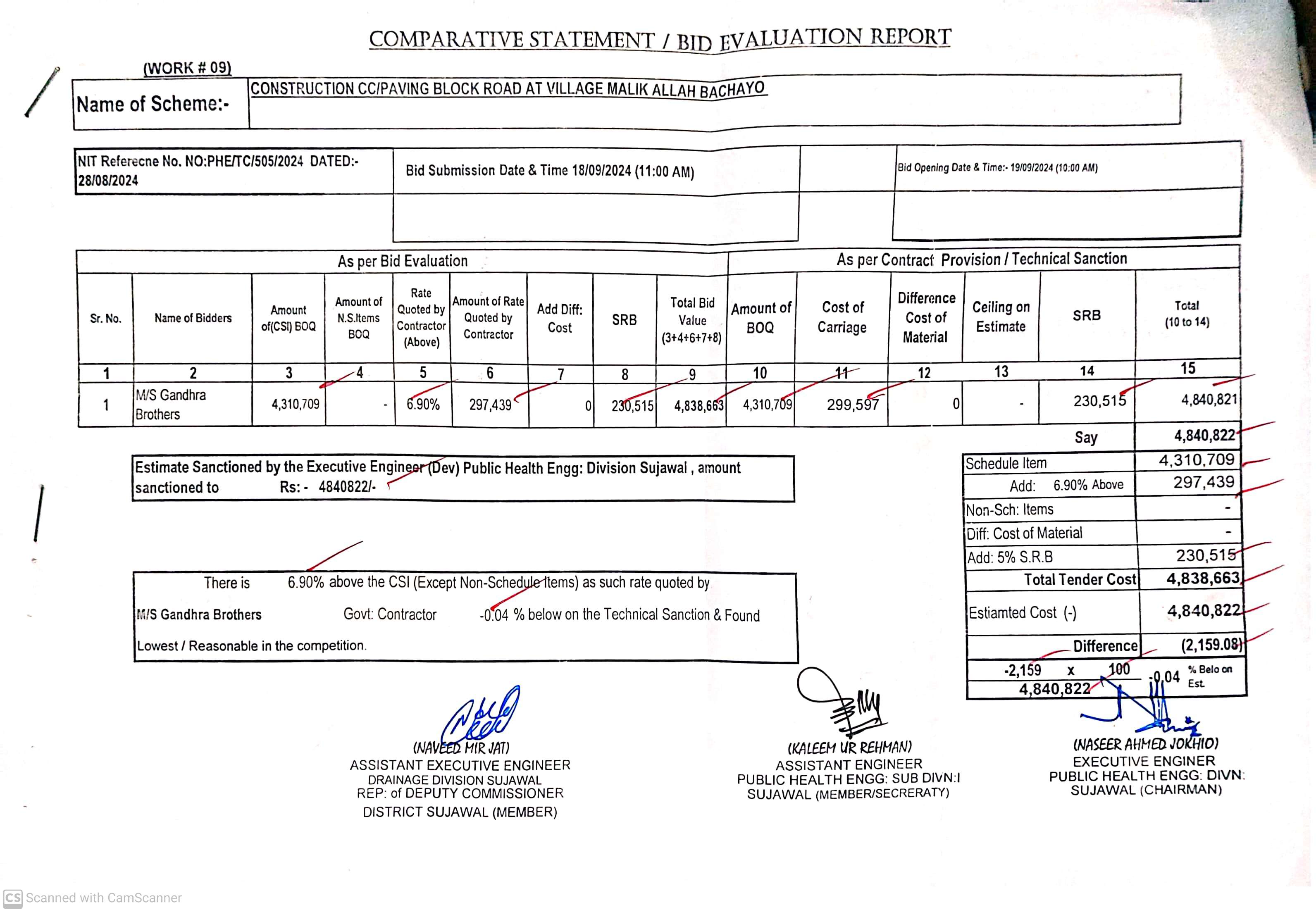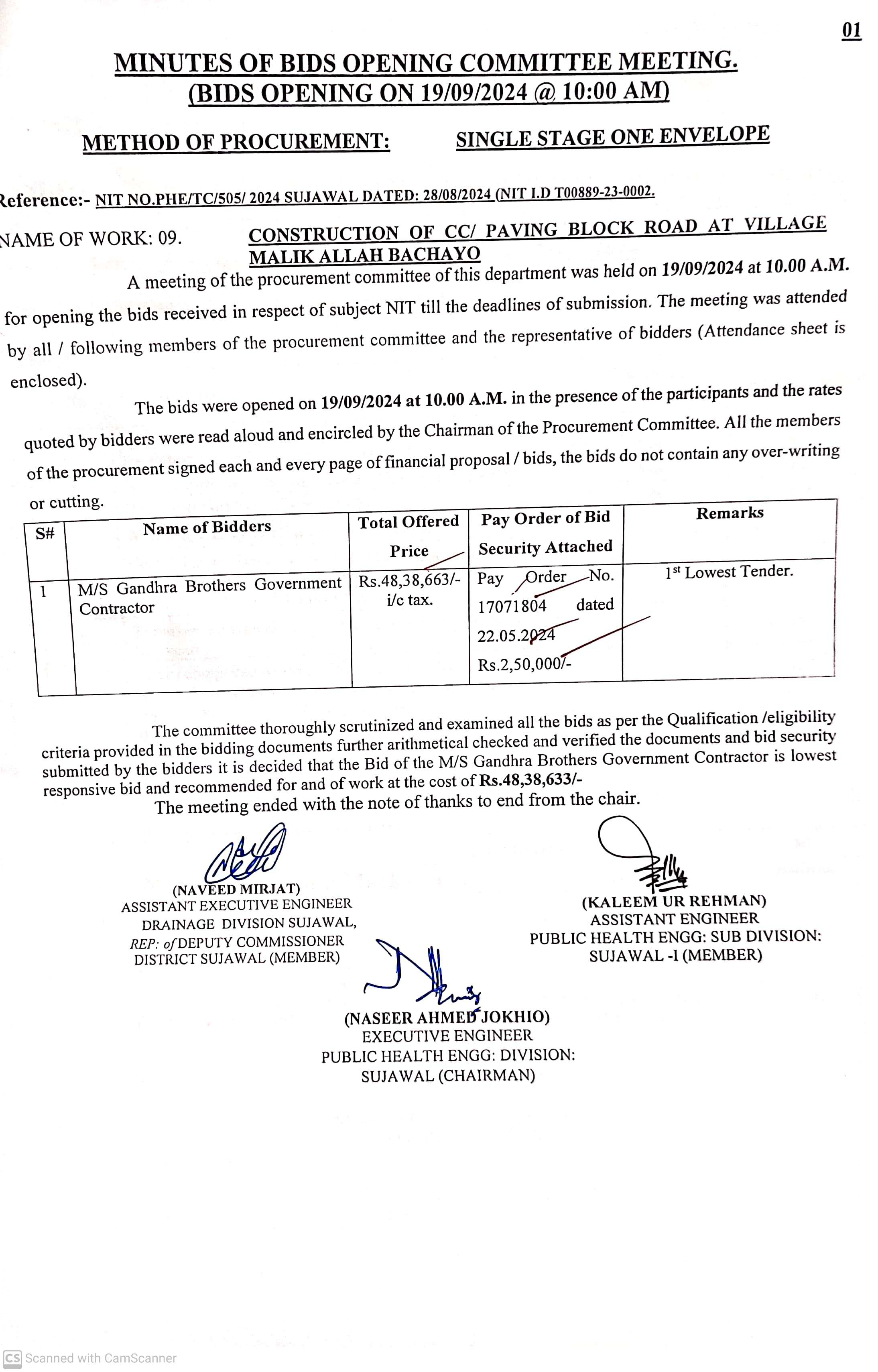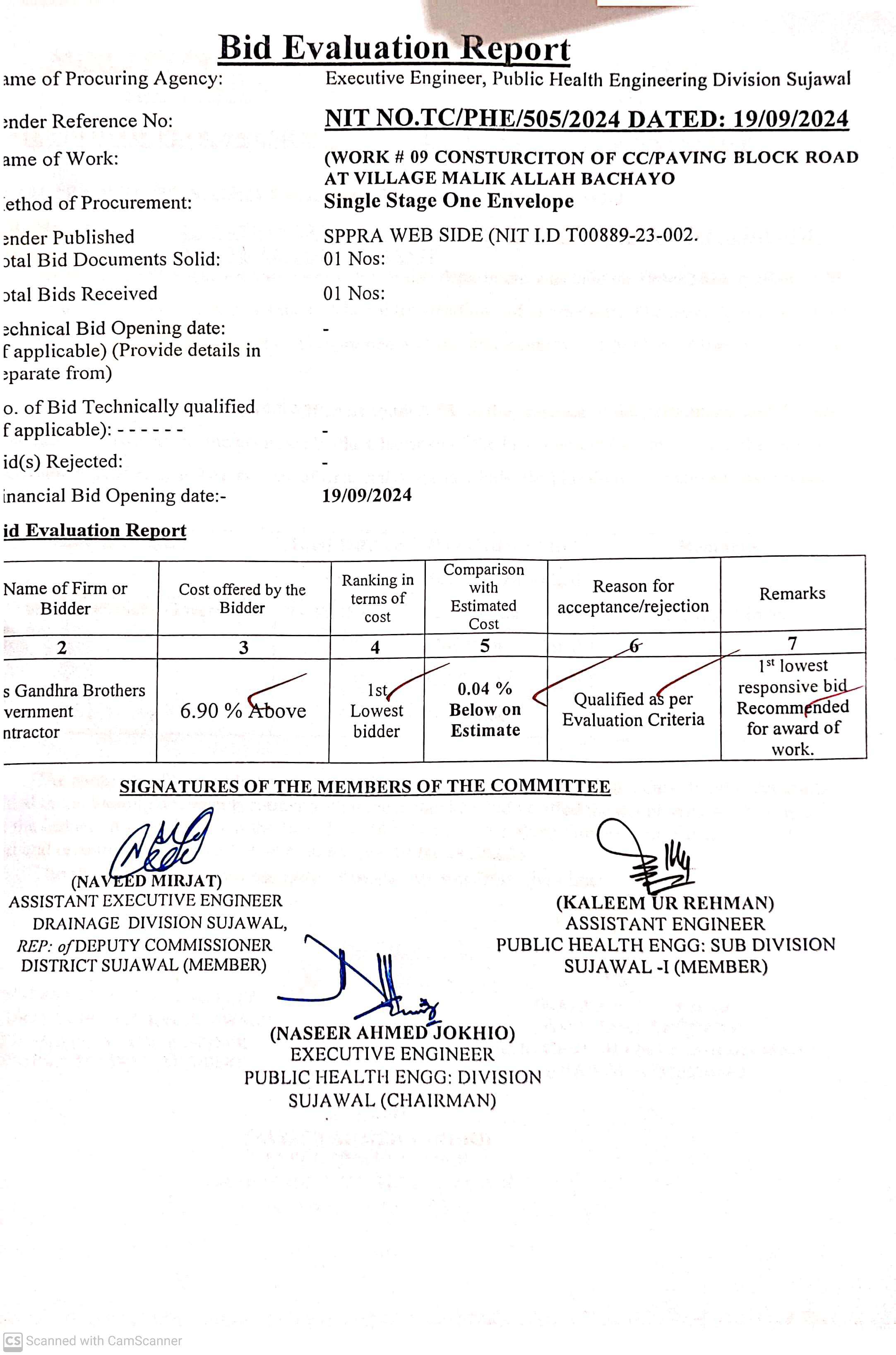 | T00889-23-0002 | BE00889-23-0002-9 | 9. CONSTRUCTION OF C.C. /PAVING BLOCK ROAD AT VILLAGE MALIK ALLAH BACHAYO | Executive Engineer Public Health Engineering Division Sujawal (34-Public health Engineering Department) | 20-09-2024 | Sujawal | Active |