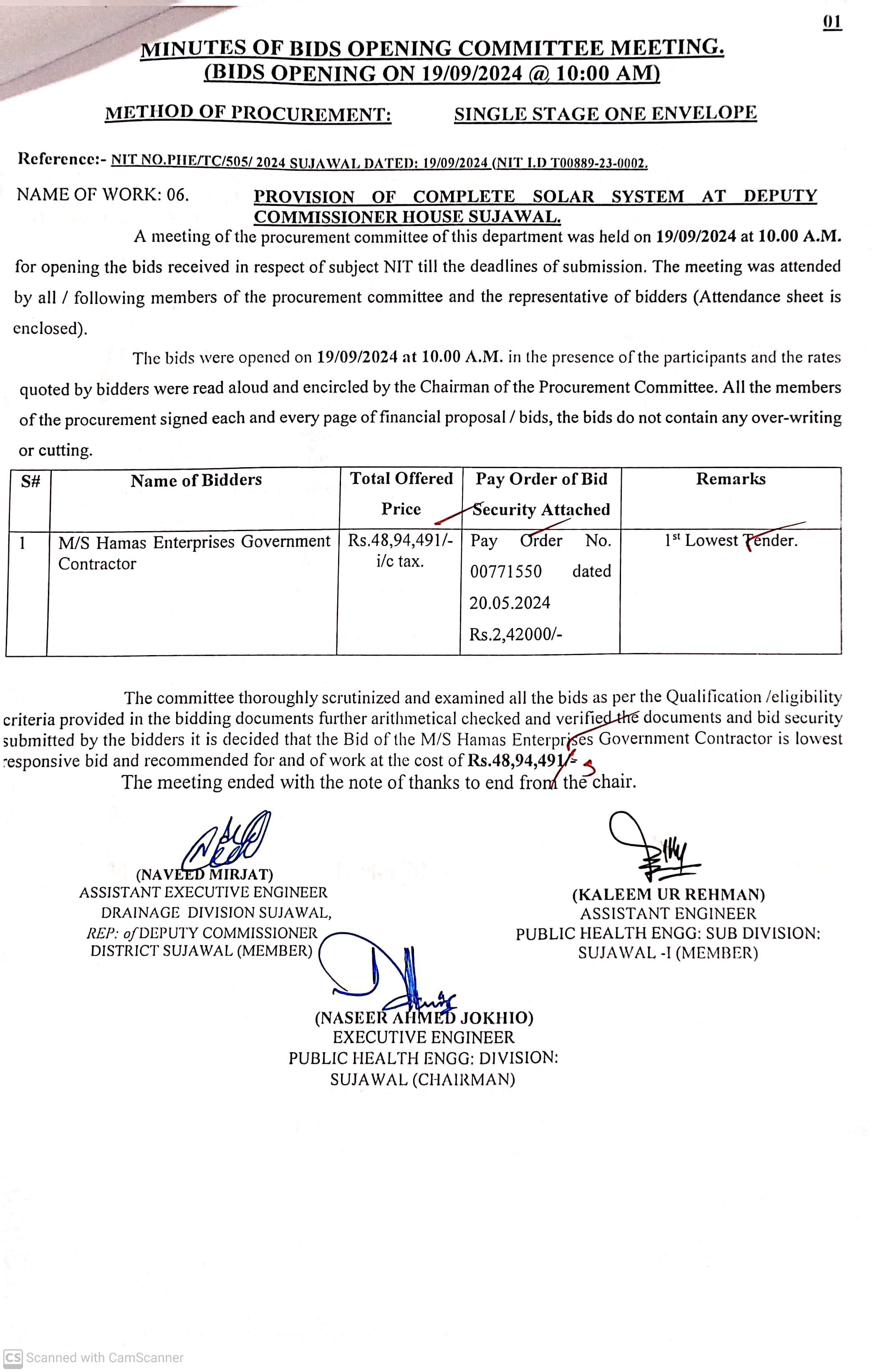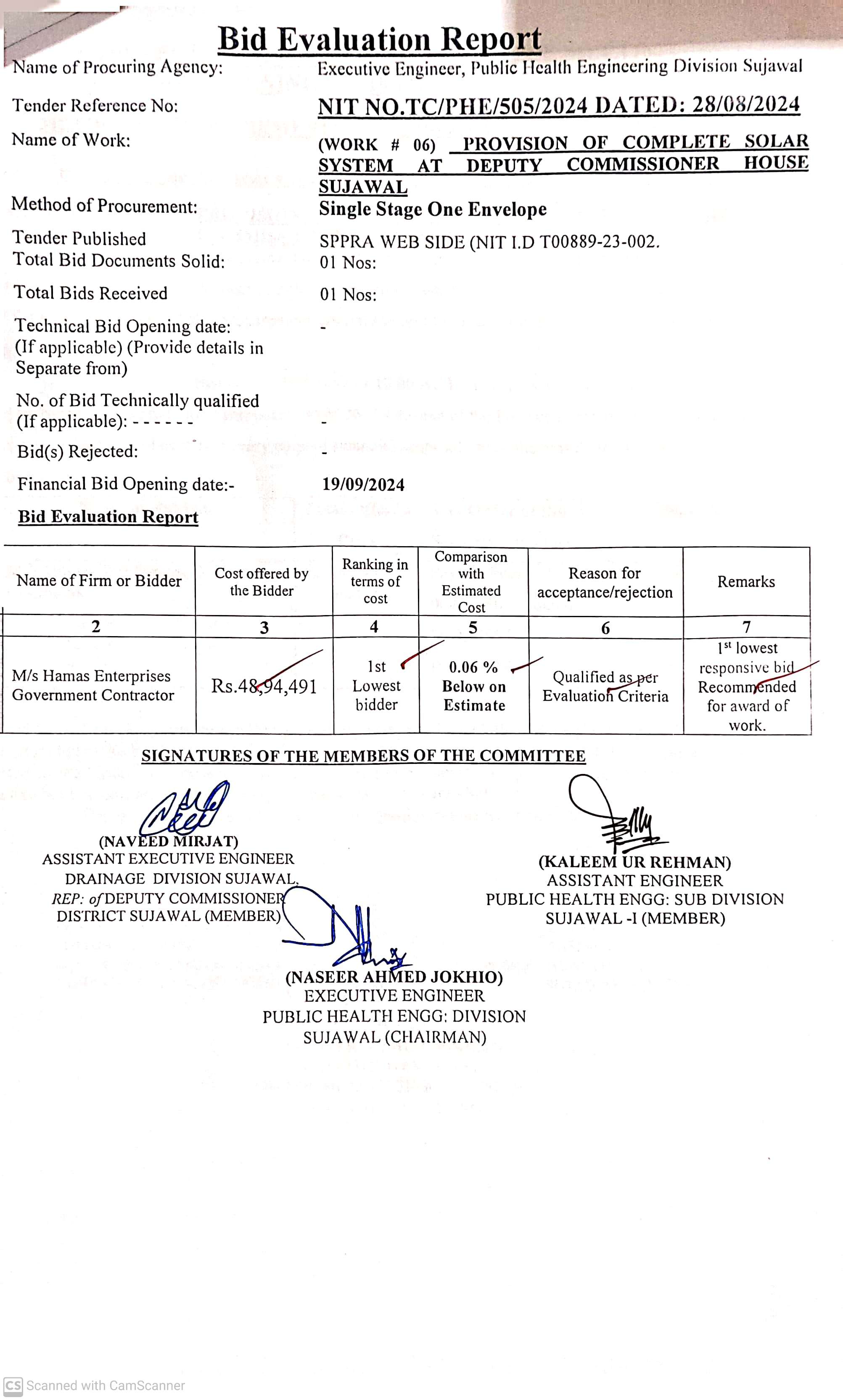 | T00889-23-0002 | BE00889-23-0002-6 | 6. PROVISION OF COMPLETE SOLAR SYSTEM AT DEPUTY COMMISSIONER HOUSE SUJAWAL | Executive Engineer Public Health Engineering Division Sujawal (34-Public health Engineering Department) | 20-09-2024 | Sujawal | Active |
