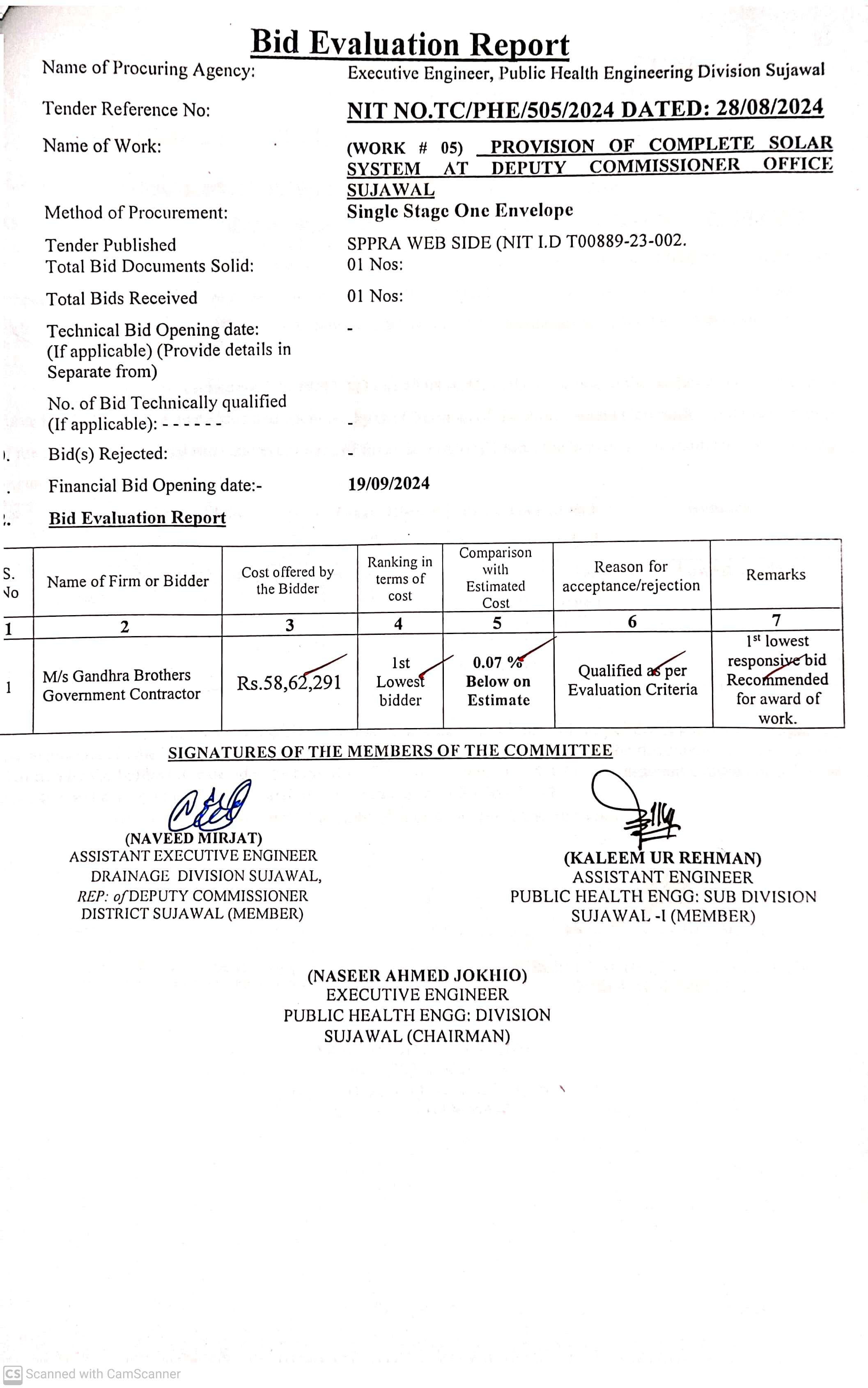 | T00889-23-0002 | BE00889-23-0002-2 | 2. PROVISION OF UF PLANT & SOLAR SYSTEM AT DISTRICT HEAD QUARTER HOSPITAL SUJAWAL | Executive Engineer Public Health Engineering Division Sujawal (34-Public health Engineering Department) | 20-09-2024 | Sujawal | Active |