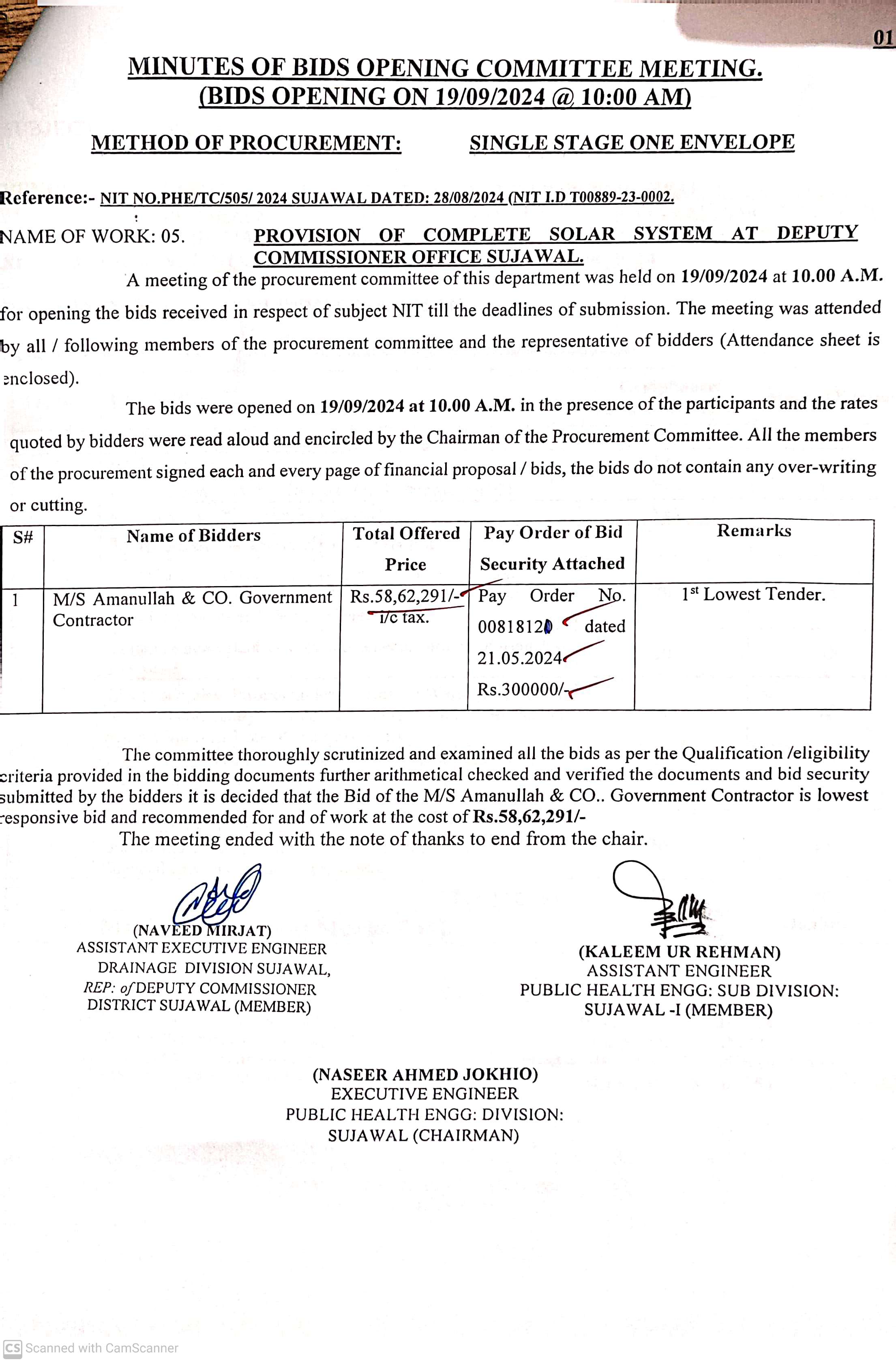 | T00889-23-0002 | BE00889-23-0002-5 | 5. PROVISION OF COMPLETE SOLAR SYSTEM AT DEPUTY COMMISSIONER OFFICE SUJAWAL | Executive Engineer Public Health Engineering Division Sujawal (34-Public health Engineering Department) | 20-09-2024 | Sujawal | Active |