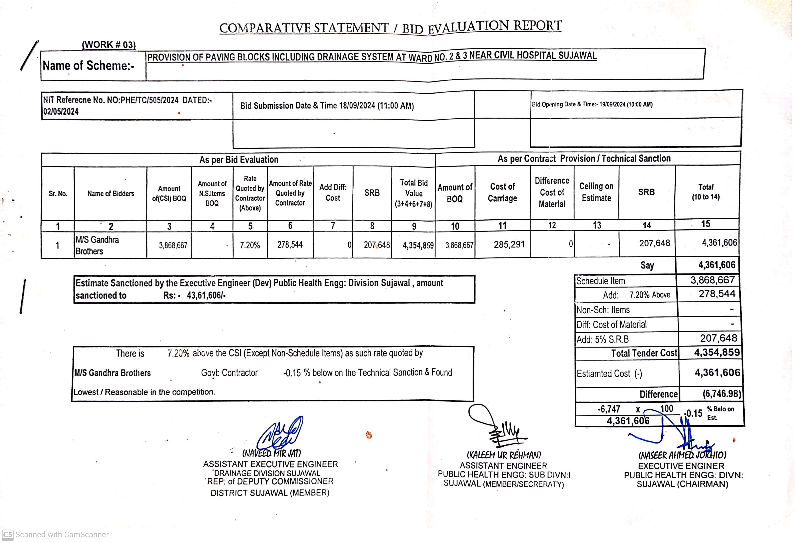 | T00889-23-0002 | BE00889-23-0002-3 | 3. PROVISION OF PAVING BLOCKS INCLUDING DRAINAGE SYSTEM AT WARD NO.2 & 3 NEAR CIVIL HOSPITAL SUJAWAL | Executive Engineer Public Health Engineering Division Sujawal (34-Public health Engineering Department) | 20-09-2024 | Sujawal | Active |