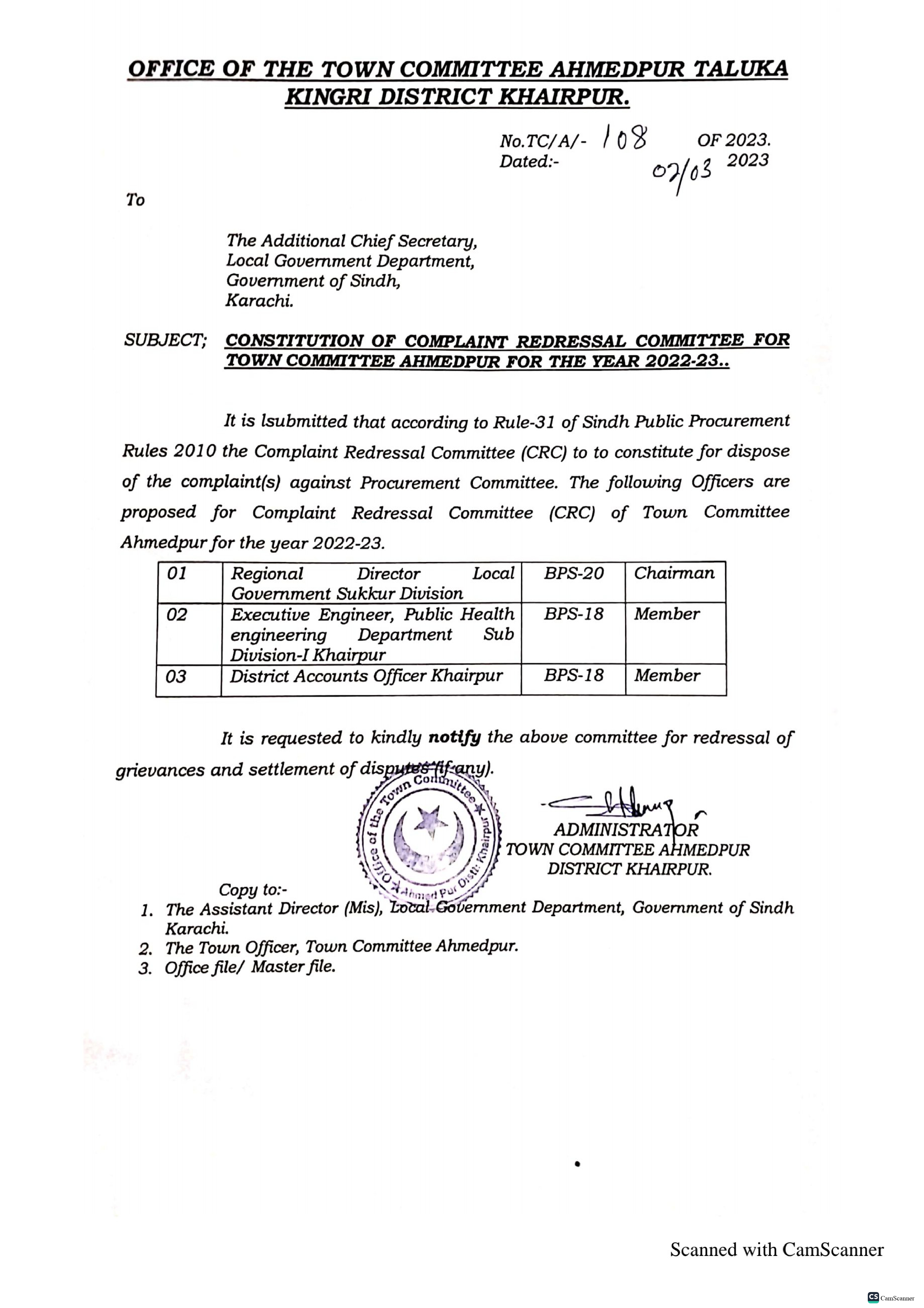 Town Committee Ahmedpur