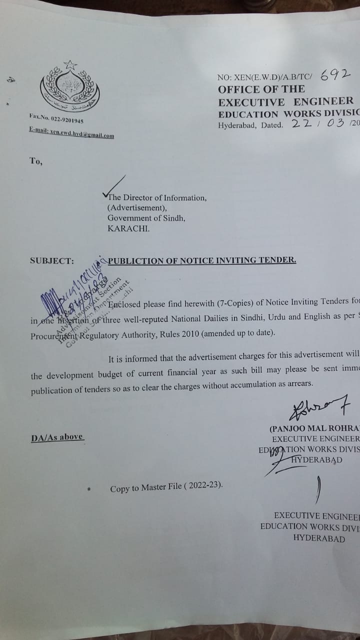 Executive Engineer, Education Electrical Division Mirpurkhas